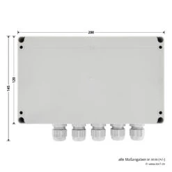 - Maße (BxHxT): 200 x 120 x 60 mm (ohne Verschraubung)