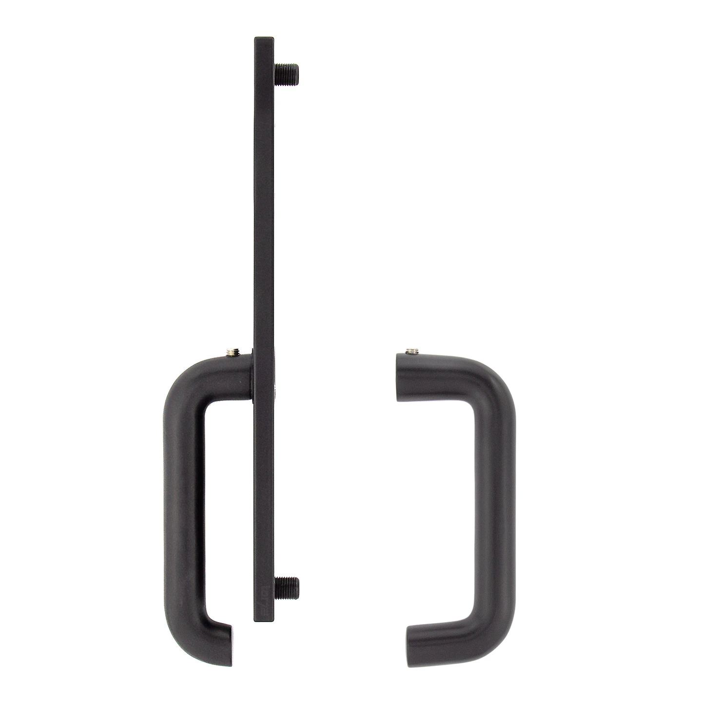 In der Ausführung aufliegend ist bei der Drückergarnitur ein einzelner Torschild dabei, der außen über dem Schloss montiert wird. Die dazugehörigen Befestigungsschrauben werden jedoch von innen eingeschraubt, sodass man die Garnitur von außen nicht einfach loslösen kann. Für eine lange Beständigkeit bestehen die zur Aluminium-Drückergarnitur, Schloss aufliegend, PZ 60/48 mm gehörenden Drücker und Schilde aus schwarz lackiertem Aluminium.