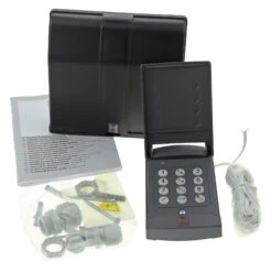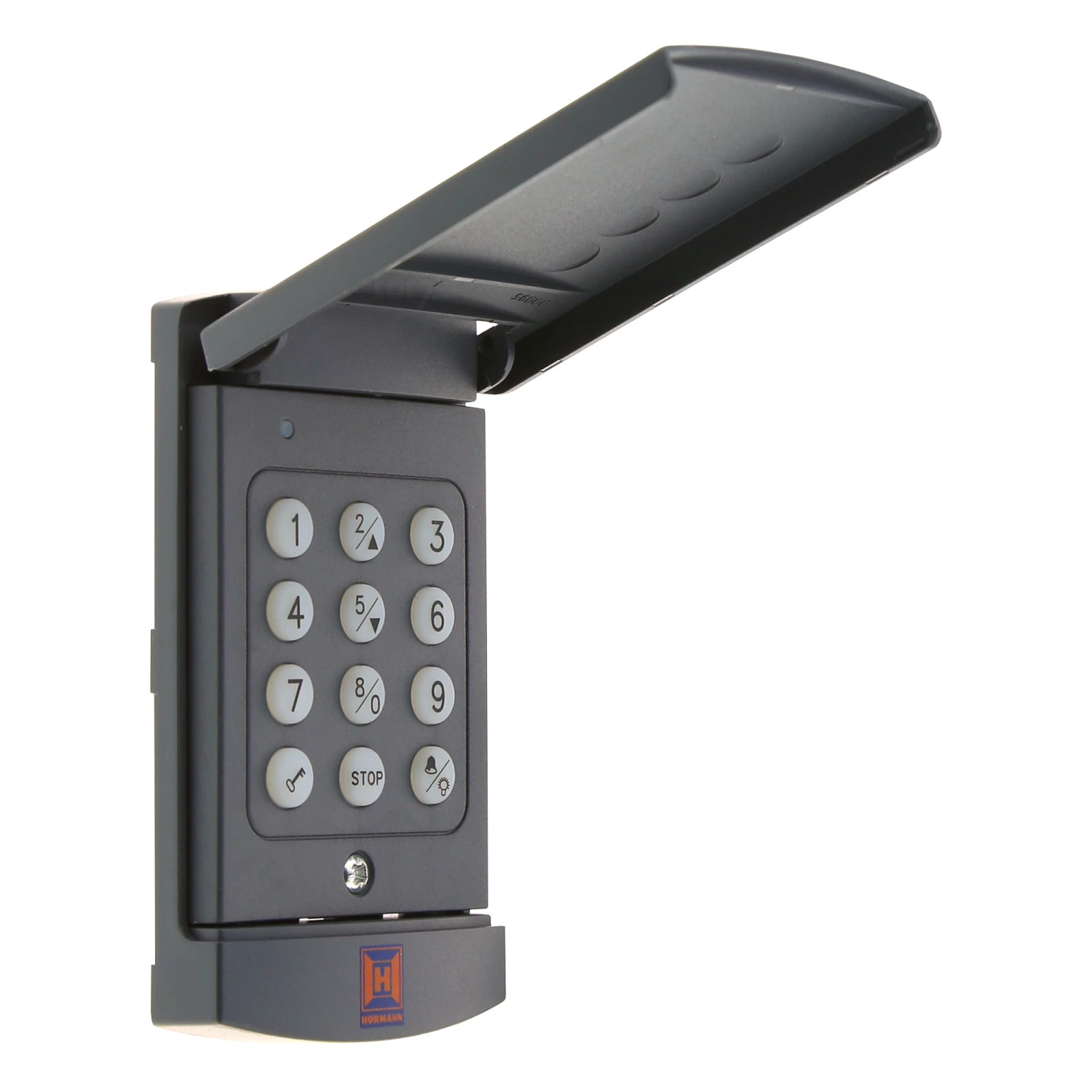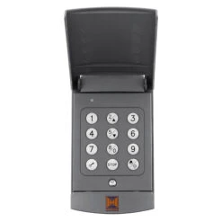 Die Eingabe eines vorher programmierten Zahlencodes löst einen Impuls aus und öffnet damit das Tor oder die Tür. Das Steuergerät ist 140 mm breit und 130 mm hoch und ausschließlich für die Montage im geschützten Innenbereich vorgesehen. Die Tastatur wird von einer Klappe geschützt, ist 70 mm breit sowie 120 mm hoch und trägt bei der Montage nur 17 mm auf dem Untergrund auf. Die Eingabeeinheit ist für die Montage im Freien geeignet.
