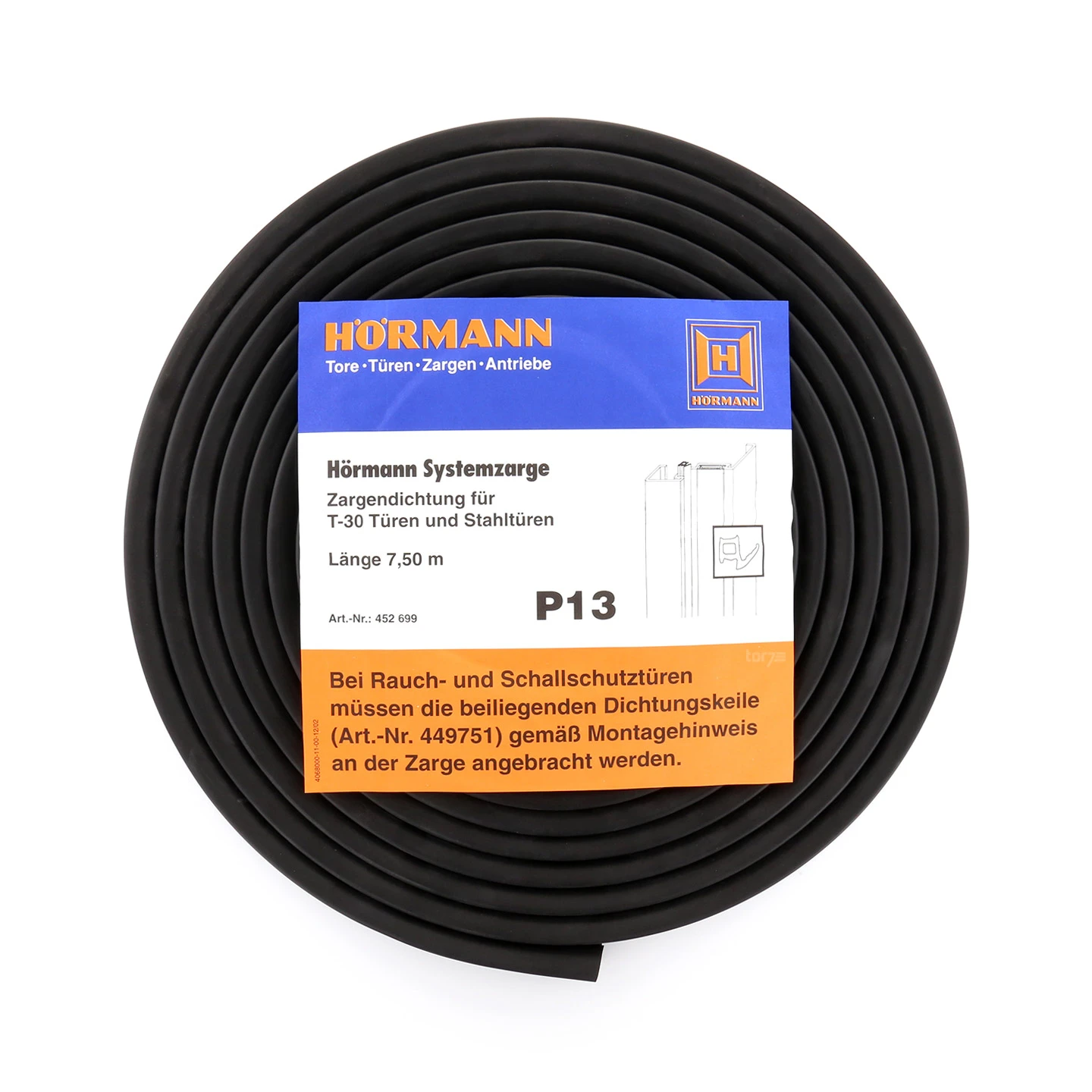 - 1 Stück Hörmann Dichtungsring P13 für T30-, RS-, SI-, MZ-Türen, Länge: 7500 mm