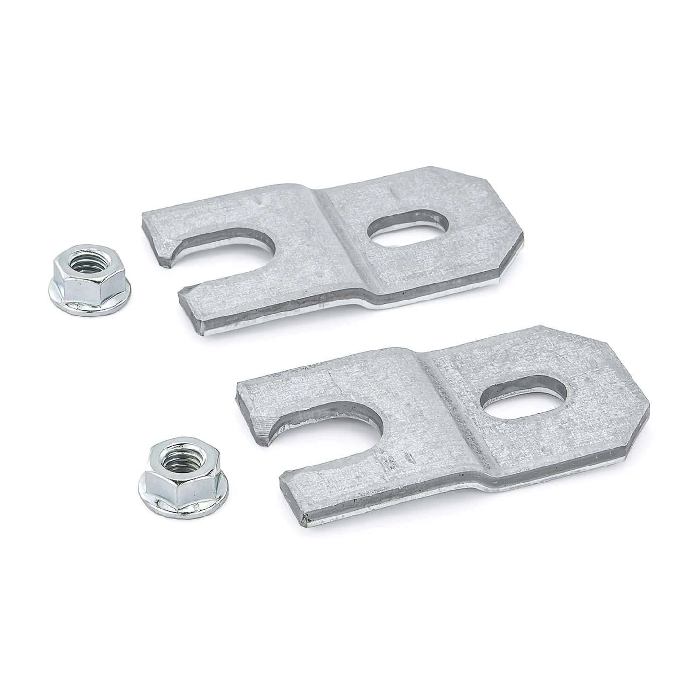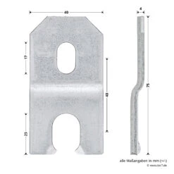 Die Hörmann Dübellasche eignet sich ausschließlich für Hörmann Multifunktionstüren aus Stahlblech, die mit einer Eckzarge ausgestattet sind und eine Falztiefe von 46 mm aufweisen. Mit dieser Falztiefe sind Türen mit 45 mm starkem Türblatt in Dünnfalzausführung oder mit 55 mm starkem Türblatt in Dickfalzausführung ausgestattet. Diese werden mit einer Eckzarge ausgeliefert, die über Ankerlaschen in Mauerwerk oder Beton befestigt wird. Hierfür ist die Zarge mit entsprechenden Schraubzapfen ausgestattet, auf die die Dübellaschen geschraubt werden. Diese normalen Ausführungen müssen eingeputzt werden, womit die Montage in Sichtmauerwerk oder Beton nicht möglich wäre. Dafür, dass auch diese Türausführungen verdeckt montiert werden können, die Ankerlaschen also nicht sichtbar sind, eignen sich diese Dübellaschen von Hörmann. Die Auslieferung erfolgt hierbei paarweise mit den passenden Muttern zum Verschrauben an der Zarge. Zu beachten ist hierbei, dass die Dübellaschen nur für die genannten Türtypen geeignet sind. Für Ausführungen mit abweichender Türblattdicke oder Falzausführung, werden passende Dübellaschen vom Hersteller angeboten.