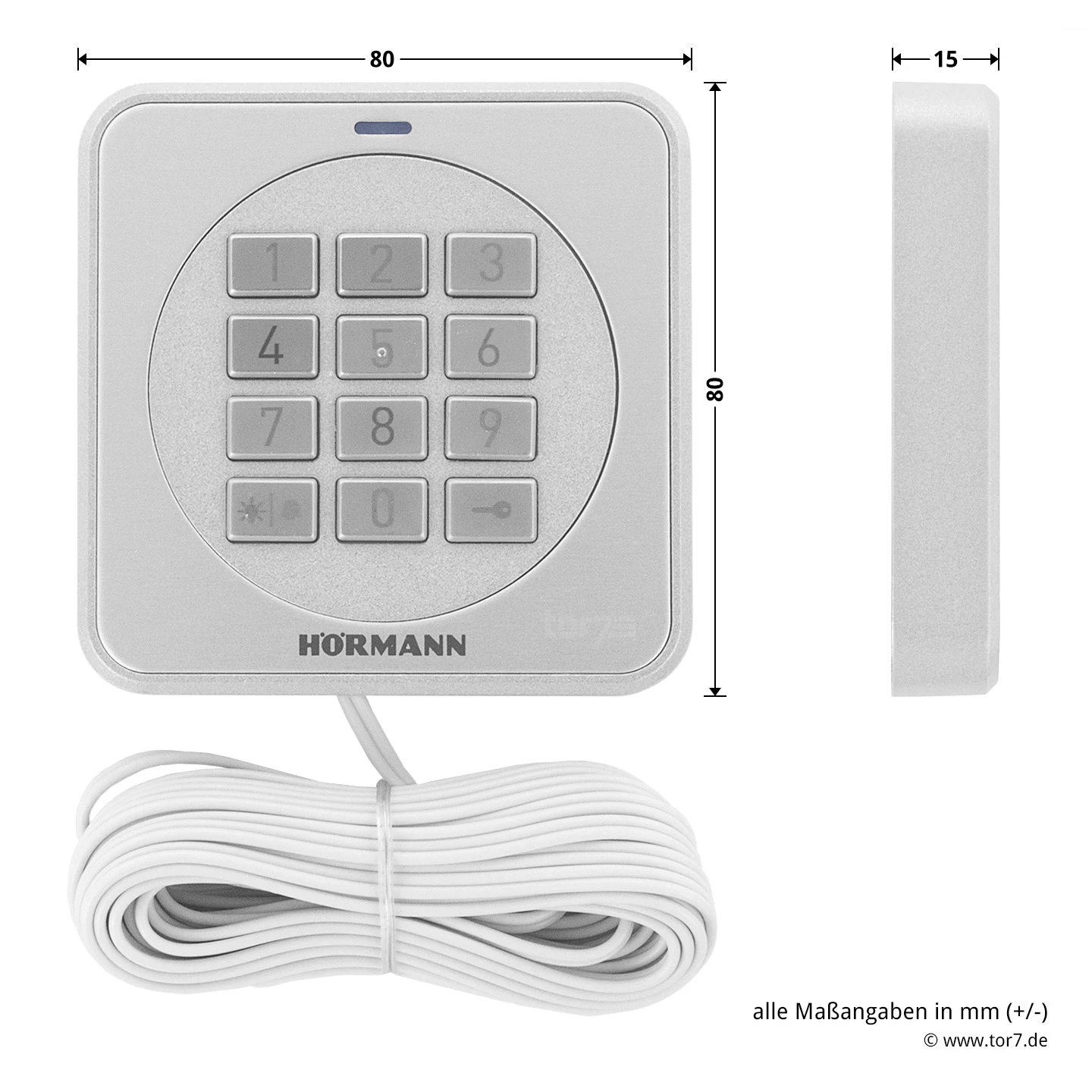 - Abmessungen (B x H x T): 80 x 80 x 15 mm