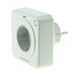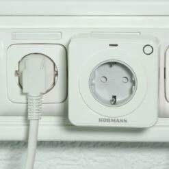Die Funksteckdose FES 1 868 MHz BiSecur (868-BS) von Hörmann hat einen bidirektionalen Empfänger zum Ein-und Ausschalten von Licht oder anderen Geräten. Dabei wird über den Relaisausgang (230 V) die Stromversorgung hergestellt oder unterbrochen. Das Relais kann mit einem geeigneten Funksender oder manuell über eine kleine Bedientaste direkt an der Steckdose geschaltet werden (nur Kanal 1). Insgesamt stehen drei Kanäle für die Ansteuerung per Funk zur Verfügung.