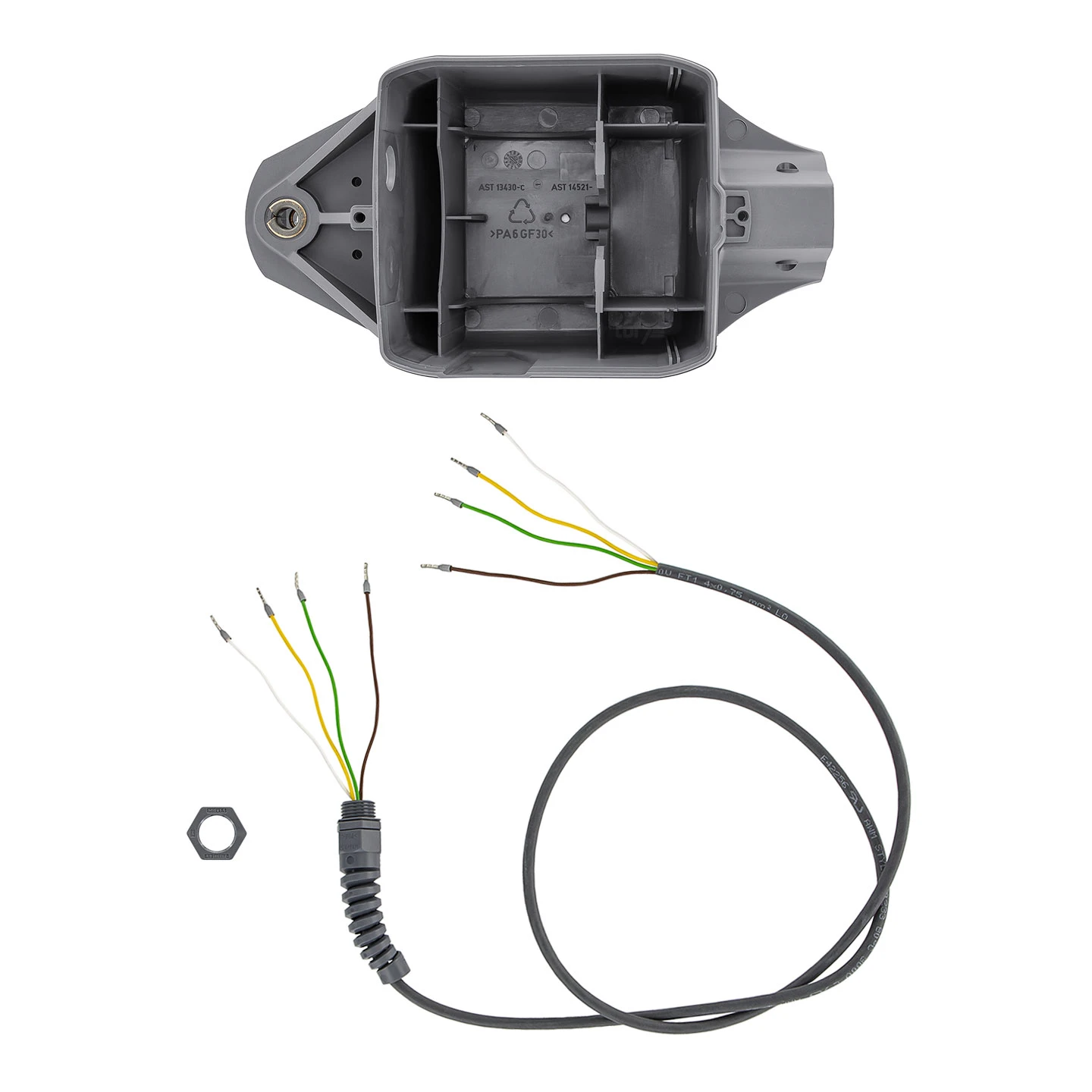 - 1 x Motoranschlussleitung kurz, 4-adrig (in Unterteil integriert)