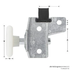 Der Hörmann Rollenhalter für die rechte Torseite kommt bei Hörmann Schwingtoren der Ausführung F80 zum Einsatz und kann bei diesen Torausführungen als passgenaues Ersatzteil verwendet werden. Eingesetzt werden diese Schwingtore vorwiegend bei der Modernisierung von Normgaragen, wobei die Eckzargenausführung als Dübel- oder Klemmbefestigung montiert wird. Der Rollenhalter ist bei den Schwingtoren F80 oben am Torblatt befestigt und mit der robusten Kunststofflaufrolle für eine ordnungsgemäße Führung in der Laufschiene verantwortlich. Somit beeinflusst dieser wesentlich eine leichtgängige und komfortable Torbewegung. Der Zustand sollte daher regelmäßig auf Beschädigungen, Verschleiß oder Korrosion geprüft werden, um Beeinträchtigungen im Torbetrieb zu vermeiden. Ausgestattet ist der Rollenhalter als komplettes Ersatzteil mit der notwendigen Laufrolle und dem Gummipuffer, der für die Abdämpfung des Torblattes in der Endlage Tor AUF zuständig ist. Der Austausch gestaltet sich durch die vorgegebenen Bohrungen besonders einfach und zeitsparend. Vorgenommen wird die Befestigung mit entsprechend geeigneten Blechschrauben.