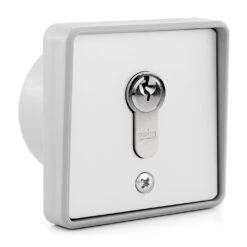 Bei einem Schlüsseltaster handelt es sich um einen Wandtaster, welcher auch außen vor der Garage montiert werden kann. Er lässt sich nur mit dem mitgelieferten Schlüssel bedienen, sodass ausschließlich dessen Besitz den Zugang gewährt. Der eigentliche Taster befindet sich im Inneren des Gehäuses und wird über den Schließzylinder bedient. Zusätzlich ist es möglich, einen weiteren Hörmann Mikrotaster MKT 1 für Schlüsseltaster STAP STUP ESA ESU einzubauen, mit welchem sich ein weiterer Antrieb oder eine weitere Funktion steuern lässt.