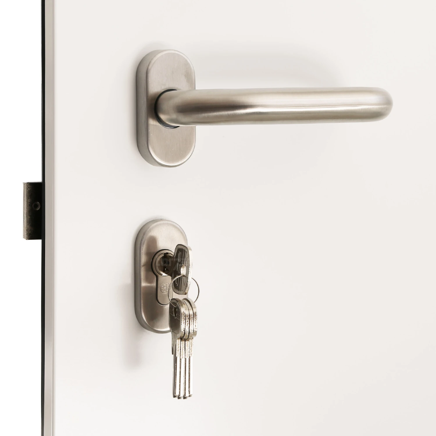 Der im Lieferumfang enthaltene Profilzylinder mit 5 Schlüsseln ist durch die Not- und Gefahrenfunktion auch noch schließbar, wenn von innen ein Schlüssel steckt.