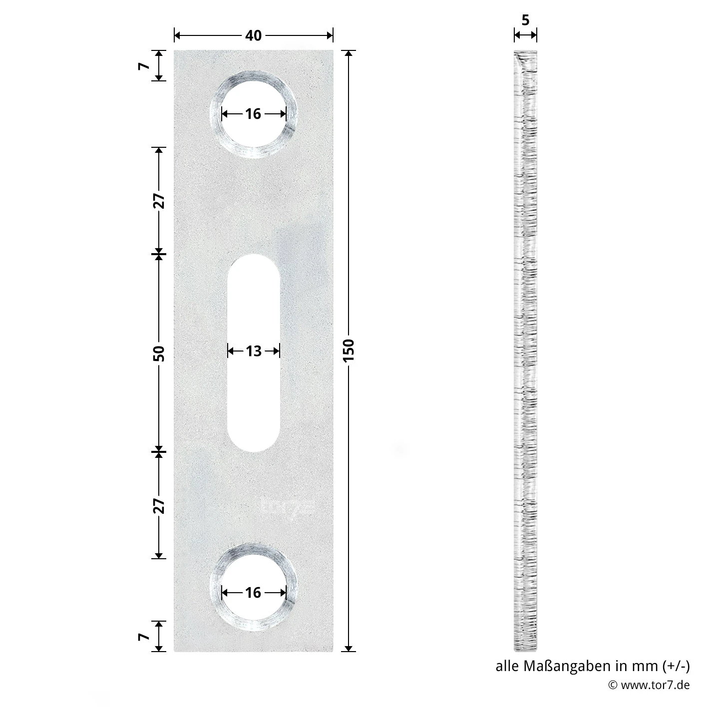 - Abmessungen (B x H x T): 150 x 40 x 5 mm